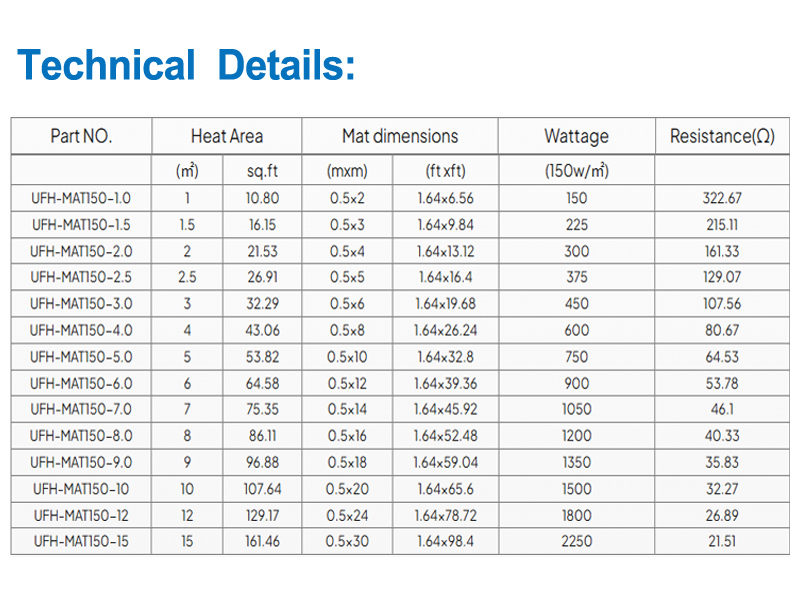 | UFH-MAT150-1.5 | 1,5 | 16.15 | 0,5x3 | 1,64x9,84 | 225 | 215.11 |